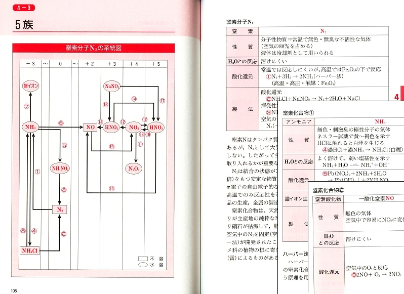 各元素のセクションのトップに、このようなまとめの図が載せてあります。その後ろには各種の説明が整理された上で載せられています。